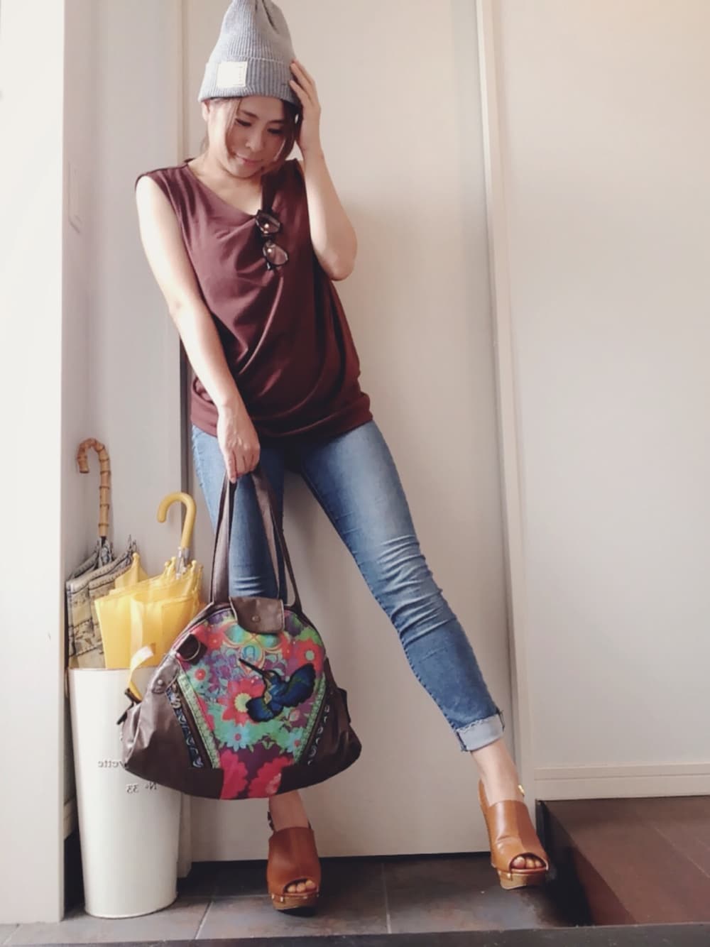 おはようございます😊✨ いつもいいね♡&セーブ&フォロー頂きありがとうございます🙏🏻 コメントも、大変嬉しいし、仲良くして頂けて感謝感謝です✨✨ 今日は、長男君お友達のお宅にピザパーティーしに行くので、ソースで汚れる事を想定😂笑 して、ブラウンのタンクトップを選んでみました😆❤️ 下はシンプルにスキニーデニム❤️❤️ まだまだ7月だけど、ニット帽なんかかぶったりして、ちょいと初秋を意識❓笑 早すぎる❓まだまだ暑いのに😂 それでは買い出しにいってくるかな😙✨