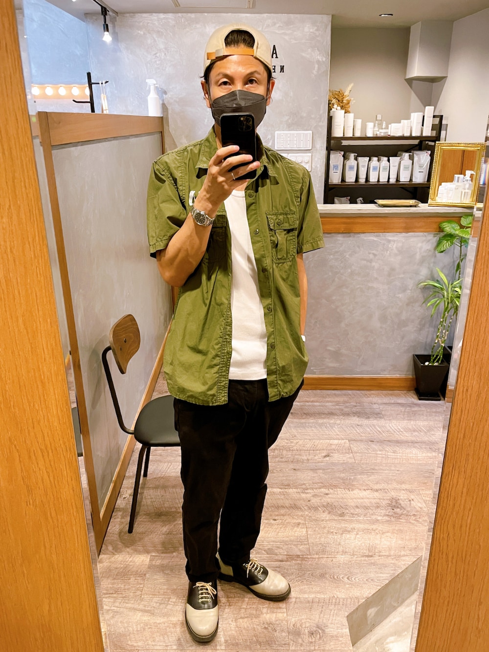 ミリタリーシャツをスマートコーデ あまり出番がないサドルシューズを 合わせてみました パンツもタイトなスキニーで ボリューム感がないサドルシューズに合わせ ロールアップしてます