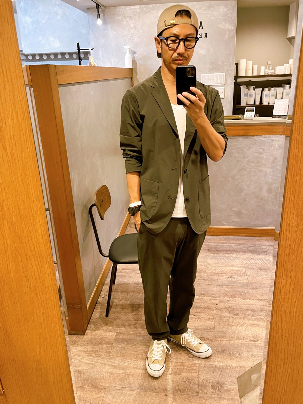 セットアップコーデ スニーカーとキャップでカジュアルに寄せて ラフにしました