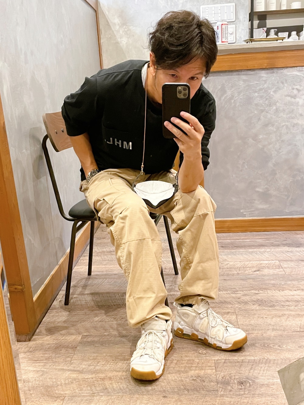 モアテン見せる為に カーゴのボトムを絞ってます笑 MHL.のカットソーは 生地が柔らかくて好き ホント着心地が良い