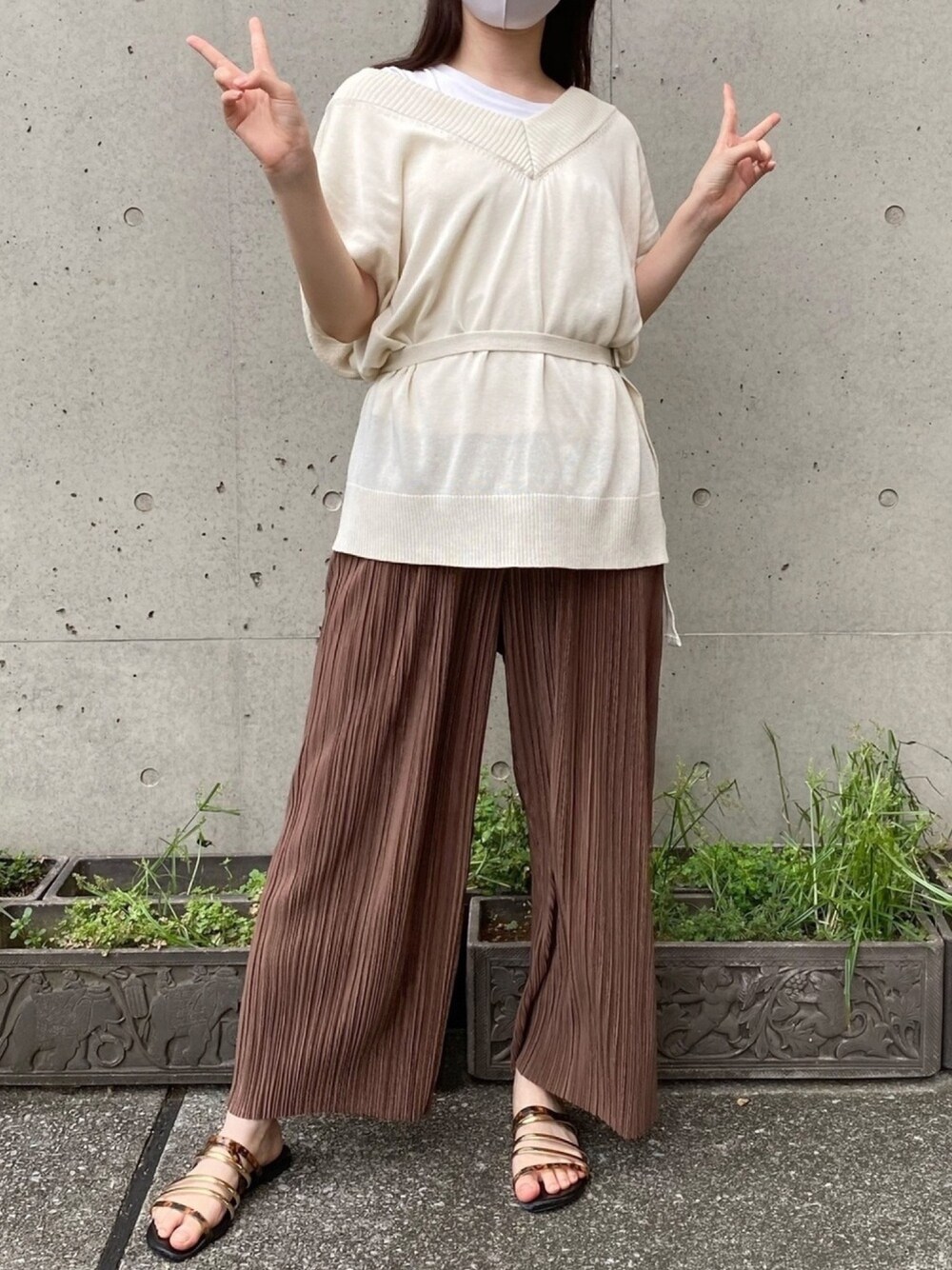 . instagram @archan.__ . ホワイトとブラウンでまとめたコーデ🤍🤎 プリーツパンツでトレンドも抑えて今の時期にぴったりなサマーニットも合わせました🥰 秋可愛なブラウンコーデたくさんしていきたいナ!