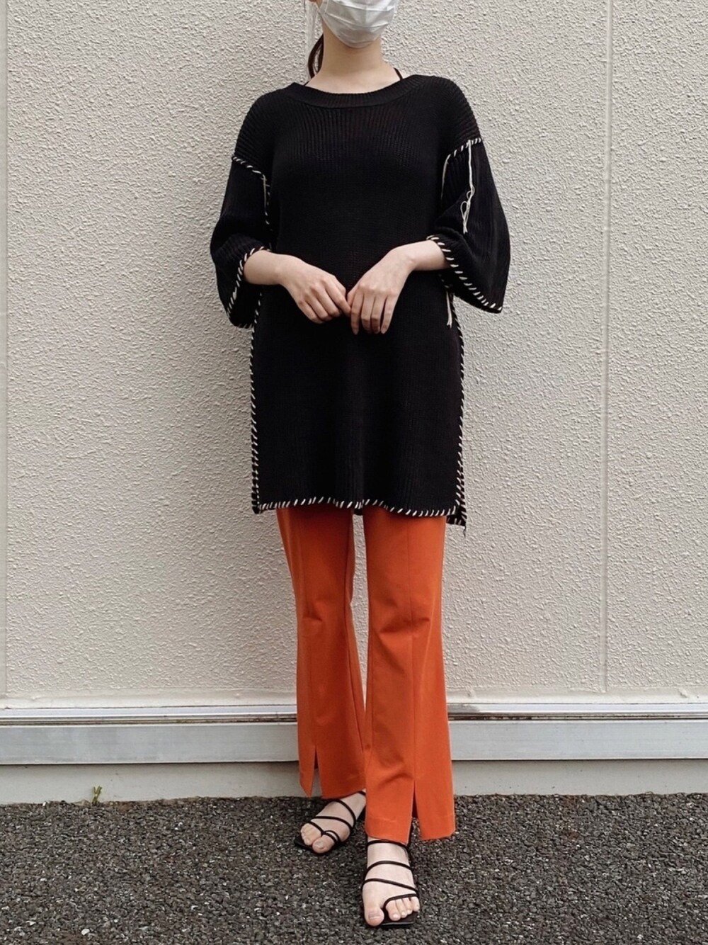 . Instagram▶︎@archan.__ オールジーナシスコーデ!🧡 夏らしいサマーニットとオレンジのビタミンカラーがお気に入り!🍊
