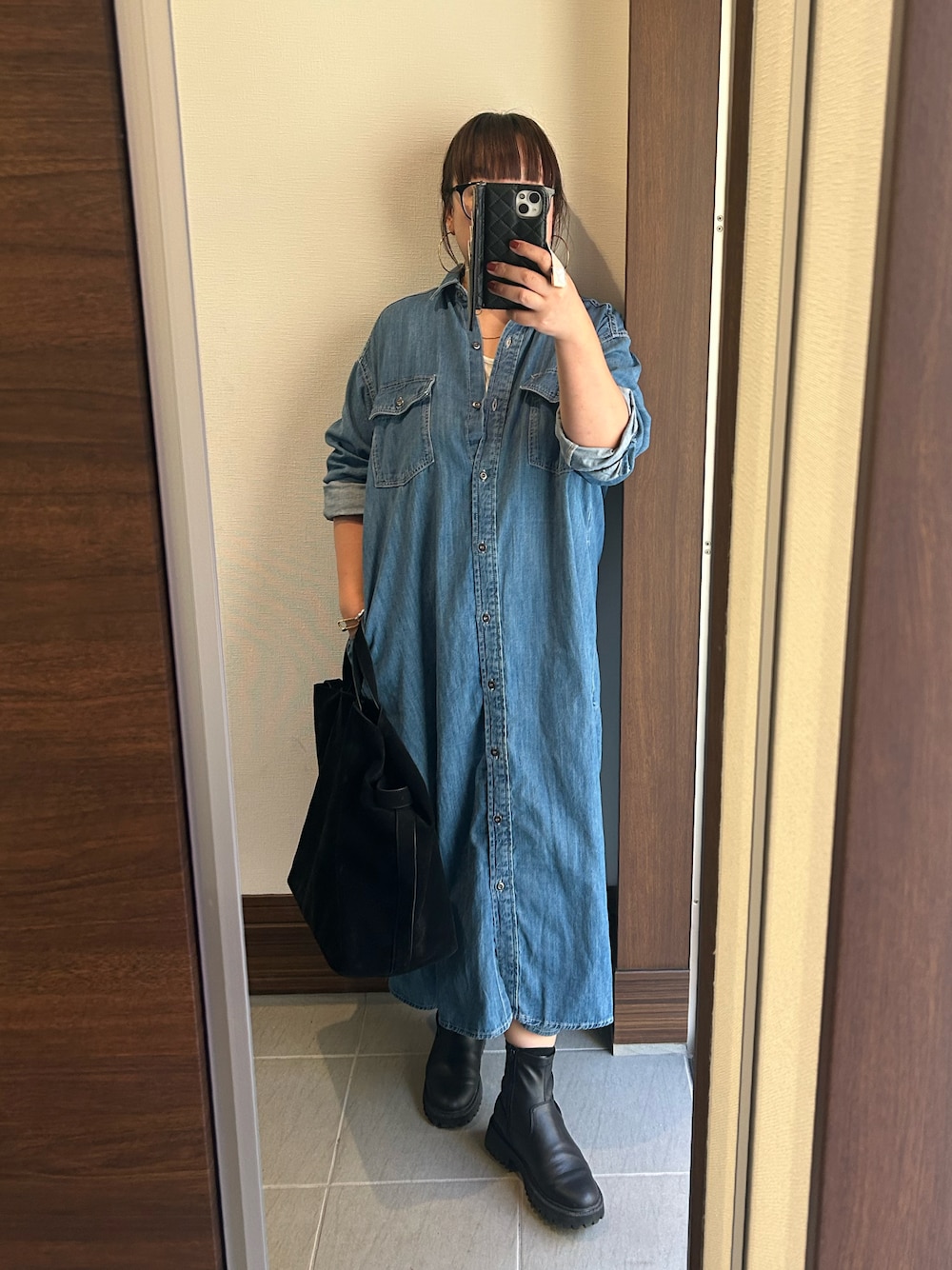 アチコのワンピース「デニムシャツワンピース」を使ったコーディネート