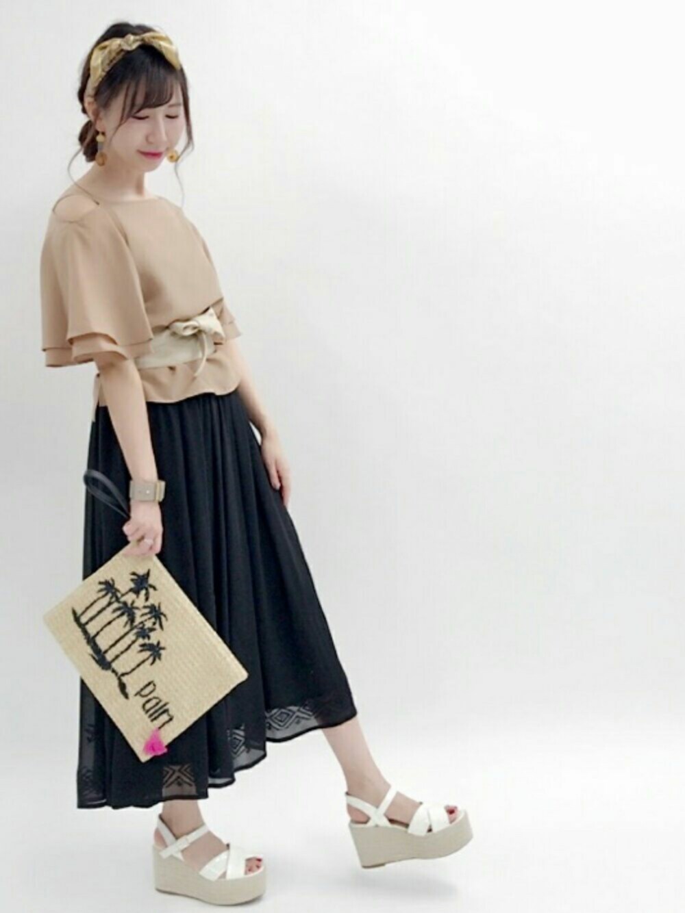 ベージュ×ブラックのシックな配色が オトナっぽくまとまる♪ スカートにはさりげなく刺繍が入っていて 抜かりなくトレンドを押さえて✨ アクセやサッシュベルトを 取り入れれば更にスタイリングを 華やかに演出してくれます(^^) 🌹model:ayaka🌹 トレンドフェミニンなayakaのwearもゼヒcheckしてみてください♩