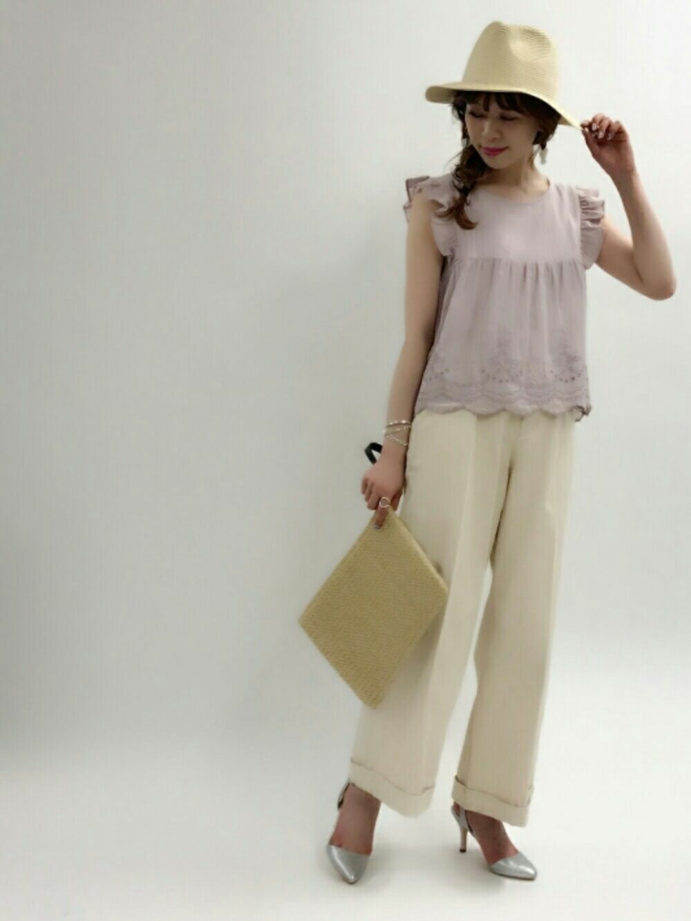 フェミニンなドビー刺繍ブラウスに 履き心地抜群のコットン素材ワイドパンツ を合わせて夏のワントーンstyle✨ 夏のデートにおすすめのコーデです(^^) 💖model:akane💖 フェミニンコーデなakaneのSNSもゼヒcheckしてみてください❤︎