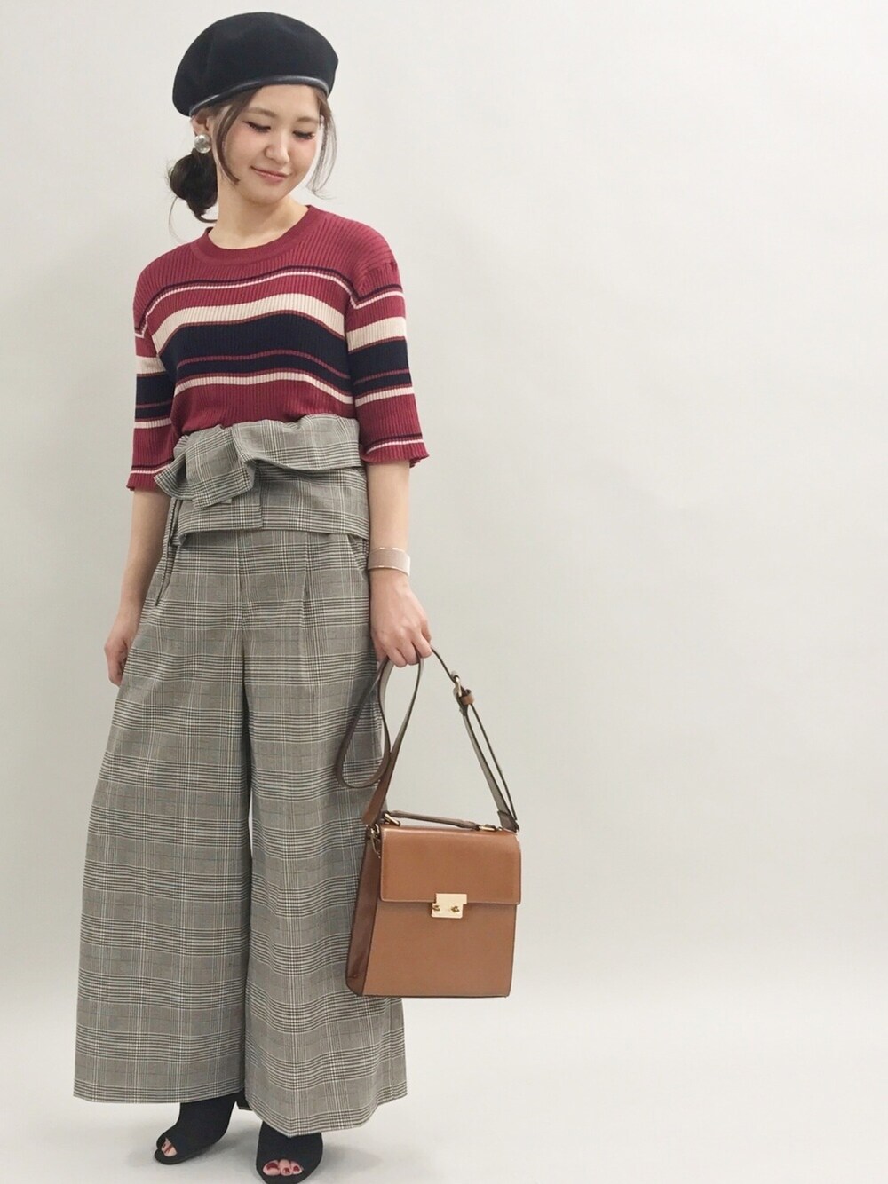 ゆるめなワイドパンツには リブトップスでスッキリめに 柄×柄の上級者コーデの完成✨ 💐model:yoshimi💐 甘めカジュアルなyoshimiのwearもゼヒcheckしてみてください❤︎