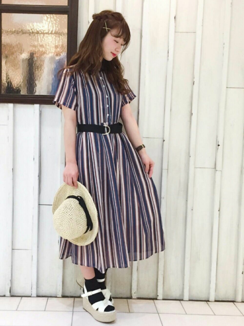 archivesのシャツワンピース「【ラストチャンス!!】マルチストライプシャツワンピ」を使ったコーディネート