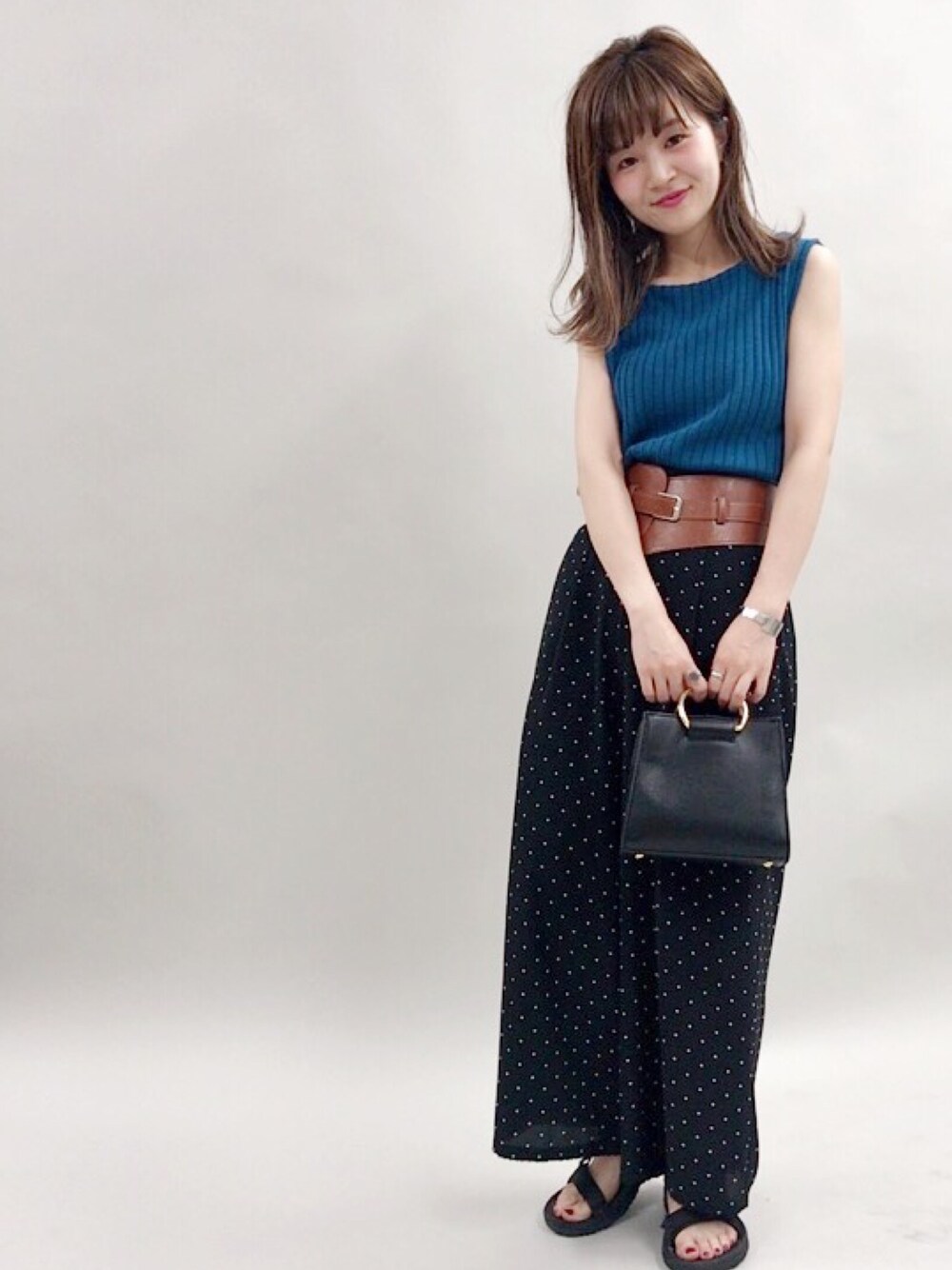 落ち着いたトーンで先取りの夏コーデ✨ ターコイズ×黒がオトナなカジュアルスタイルに💕 足元はスポーツサンダルで外すのが今の気分。。 🍥model:まるこ🍥 個性派カジュアルなまるこのwearもゼヒcheckしてみてください♩