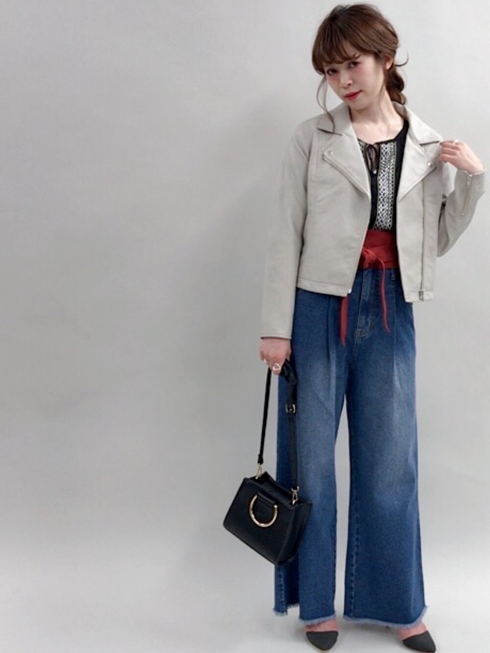 ブラックでまとめたデニムスタイル✨ 夏のトレンド刺繍ブラウスも黒をチョイスすれば秋にも使える大人カジュアルに。 ライダースを淡い色で羽織って女らしさもアップ💕 🍒model:あかねこ🍒 フェミニンコーデなあかねこのSNSもゼヒcheckしてみてください❤︎