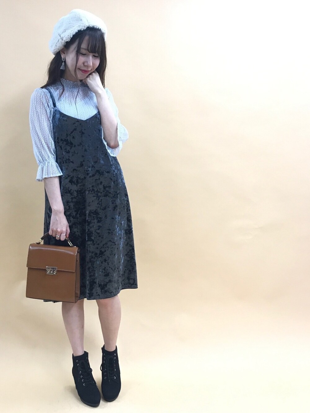 ベロアワンピを主役に レースブラウスで 大人ガーリー♪♪♪ 足元はショートブーツで スタイルアップ!! 🐰model:ayaka🐰 トレンドフェミニンなayakaのwearもゼヒcheckしてみてください♩