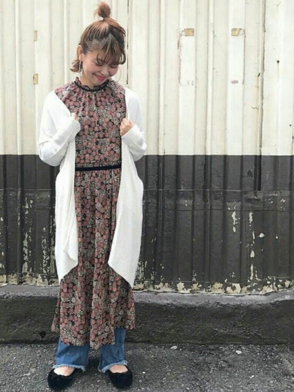 首もとのフリル使いがさりげない vintage感あるロングドレスに 肌触り抜群のロングカーデをプラス✨ ロング×ロングの上級コーデの完成♪