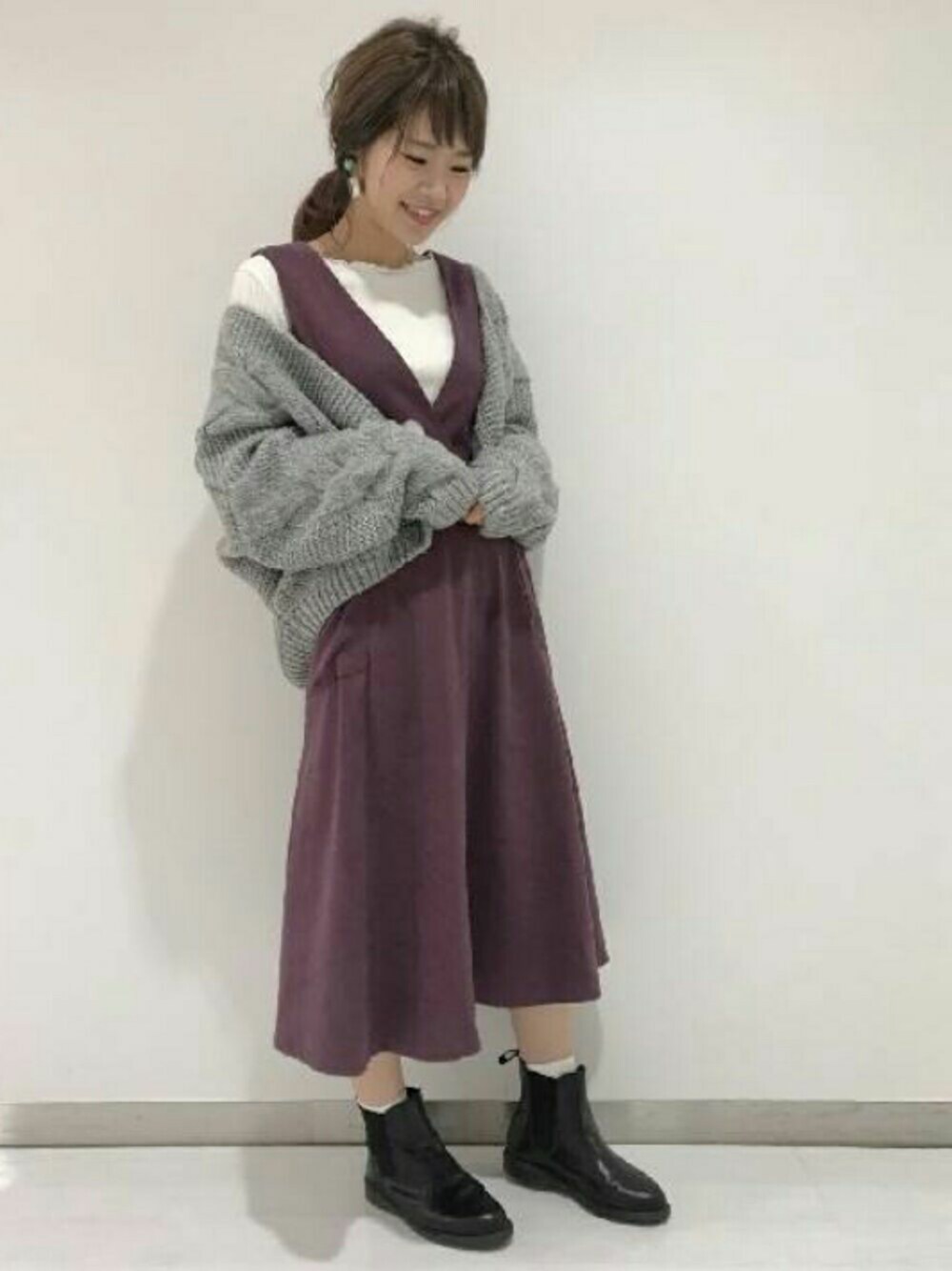 ルーズに着れるざっくり ケーブルカーデで大人カジュアルに♪ グレー×パープルの配色が新鮮✨✨