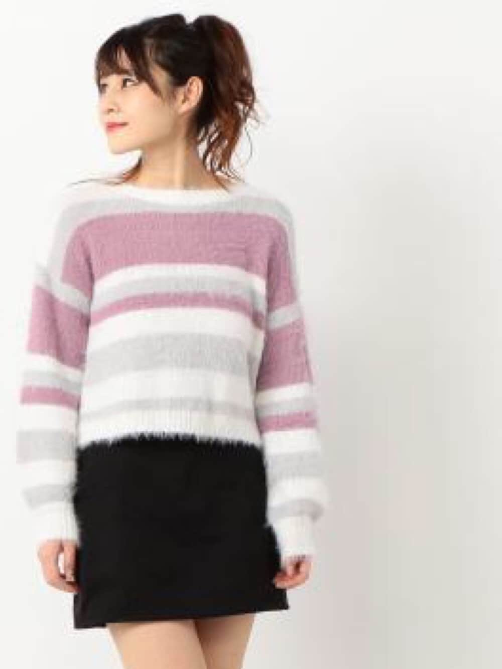 ふわふわのポーダーニットを ショートボトムでスッキリ✨ ヘアスタイルもアップにすれば さらにスッキリガーリーに💕