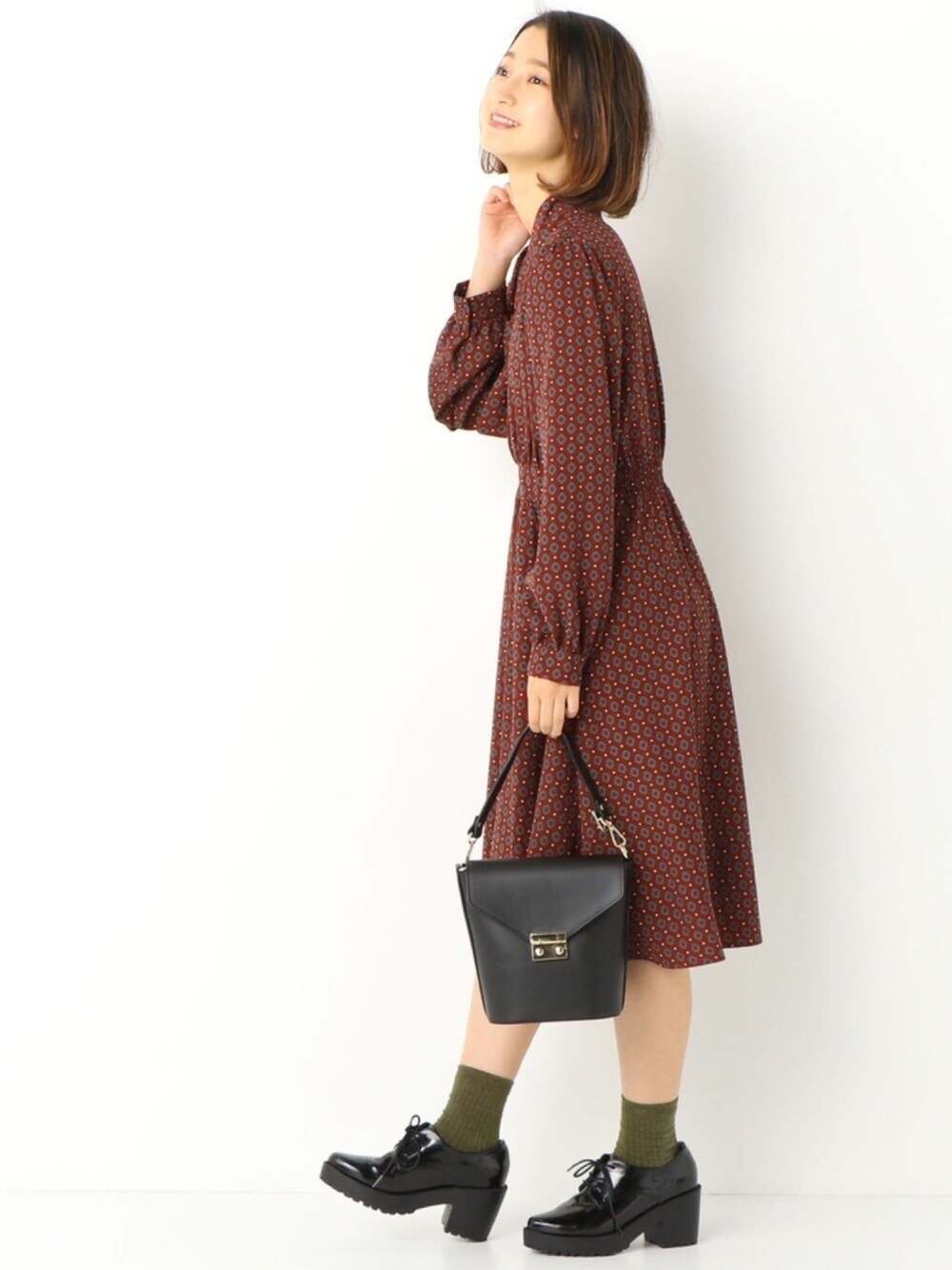 archivesのワンピース「ボウタイ幾何柄ワンピース」を使ったコーディネート