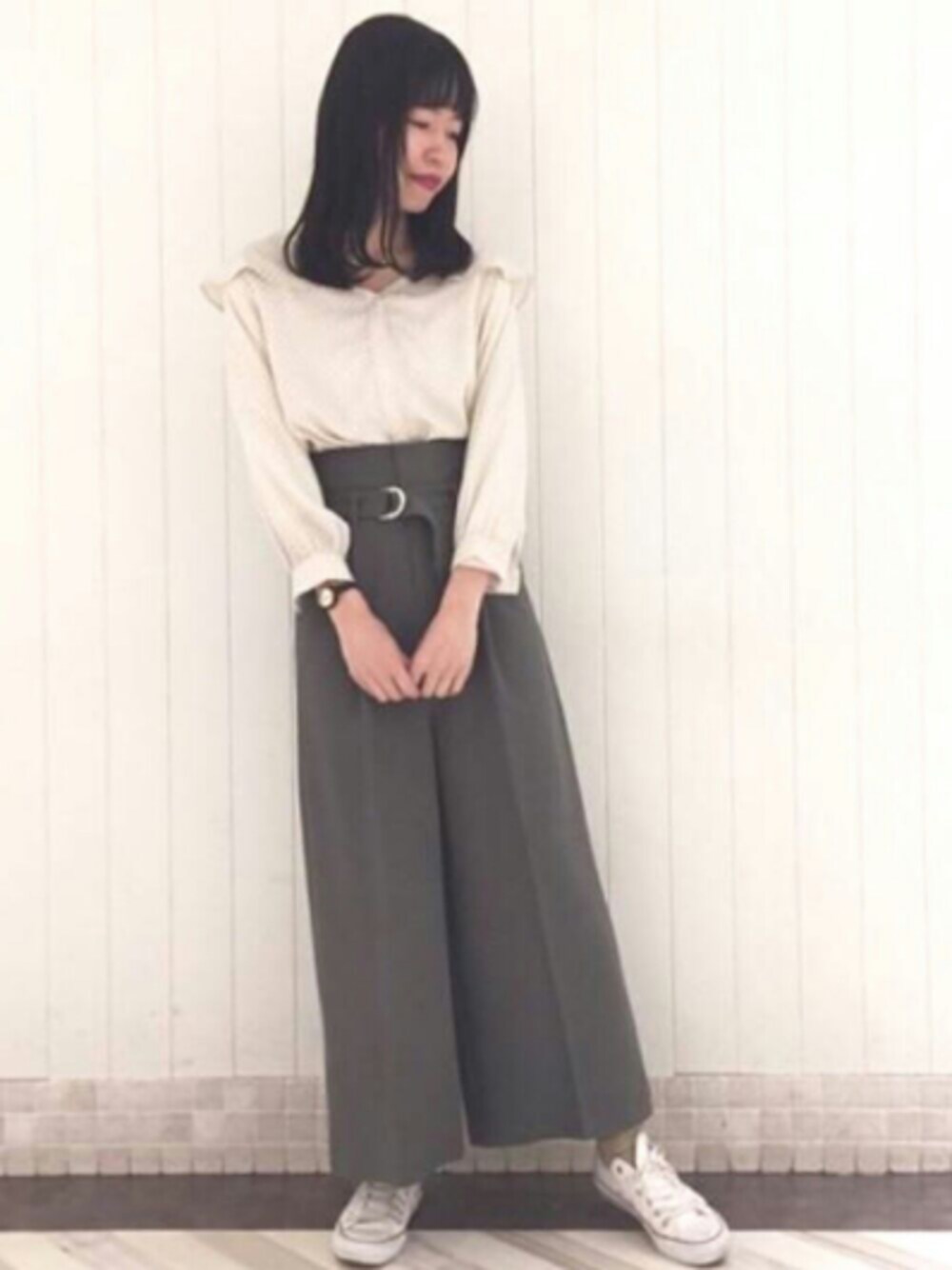ブラウスとワイドパンツの キレイめカジュアルスタイル✨ ワイドパンツはハイウエストなので脚長効果も◎ 🎫model:るこ。🎫 オシャレ番長るこ。のWEARもゼヒcheckしてみてください♪
