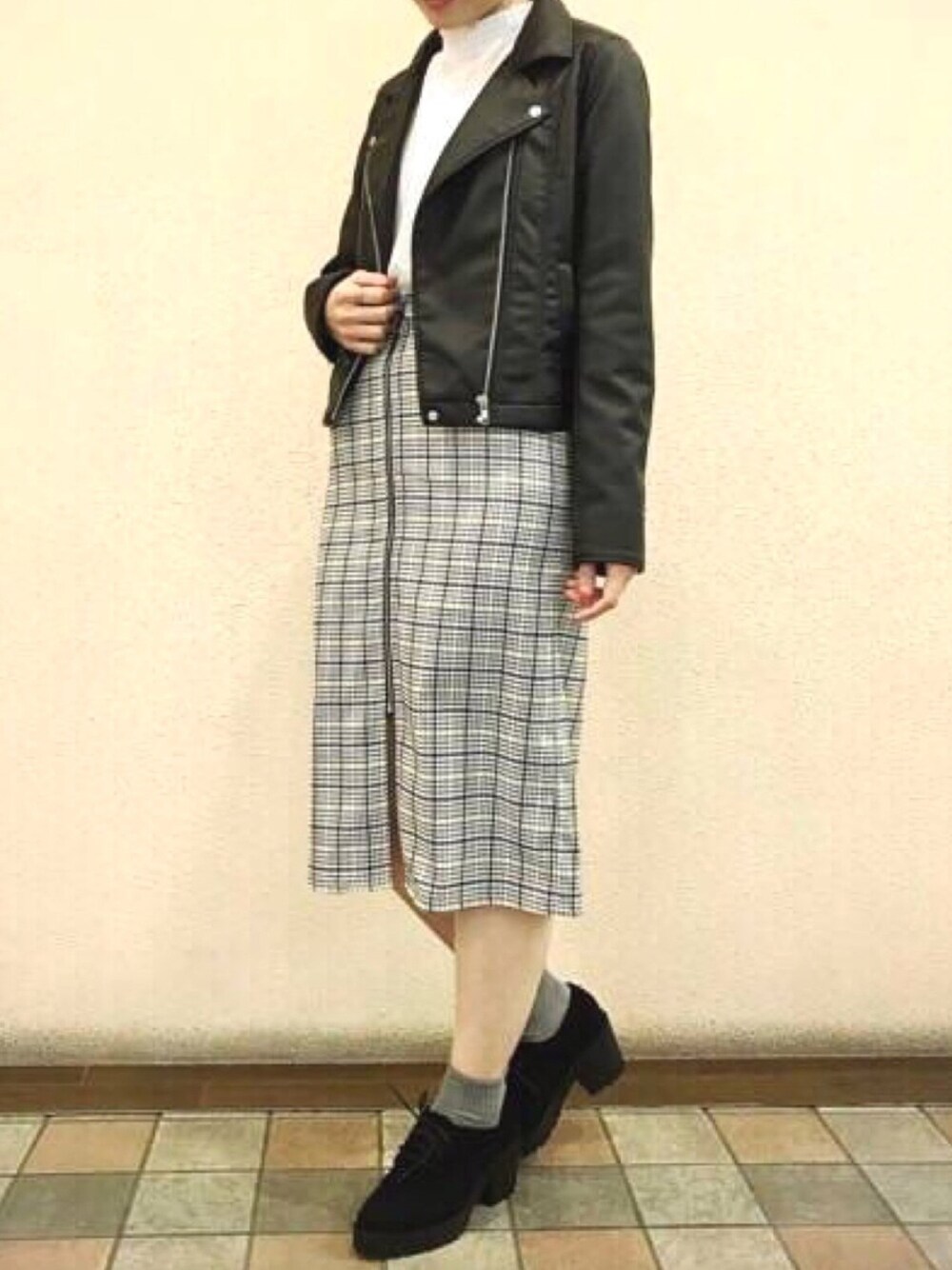 春を意識して 淡めな色味でワントーンコーデ♡ ブラックのライダースを合わせて 大人カジュアルに♪♪♪