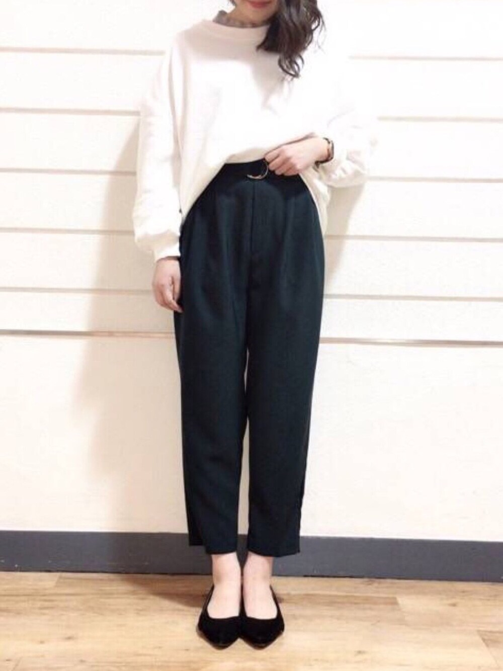 スウェットとパンツの シンプルな組み合わせがオシャレ✨✨ スウェットのインナーには ハイネックを合わせるのが今年らしい◎