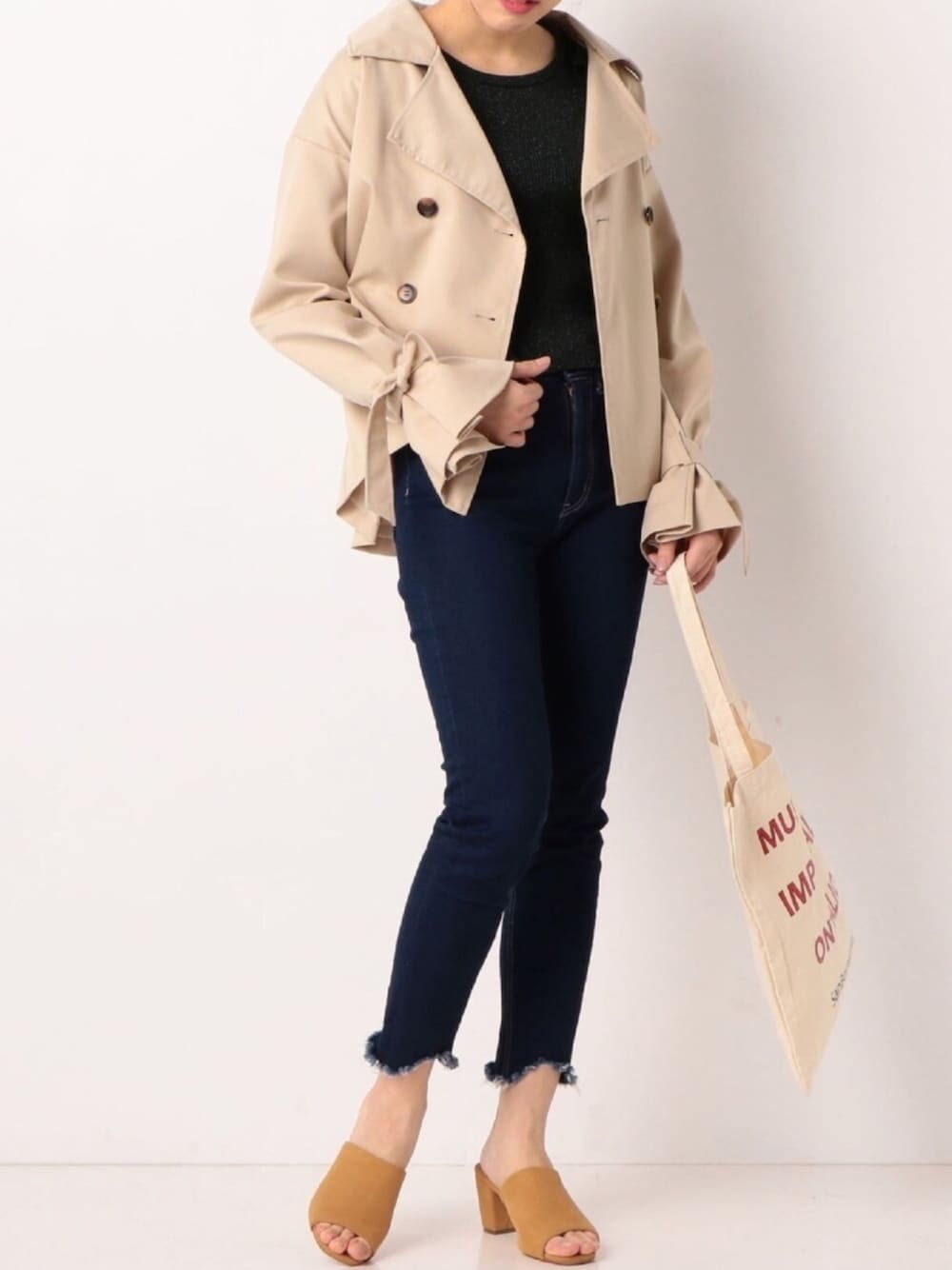 春に使えるショートトレンチコートは スキニーデニムと合わせて シンプルに✨