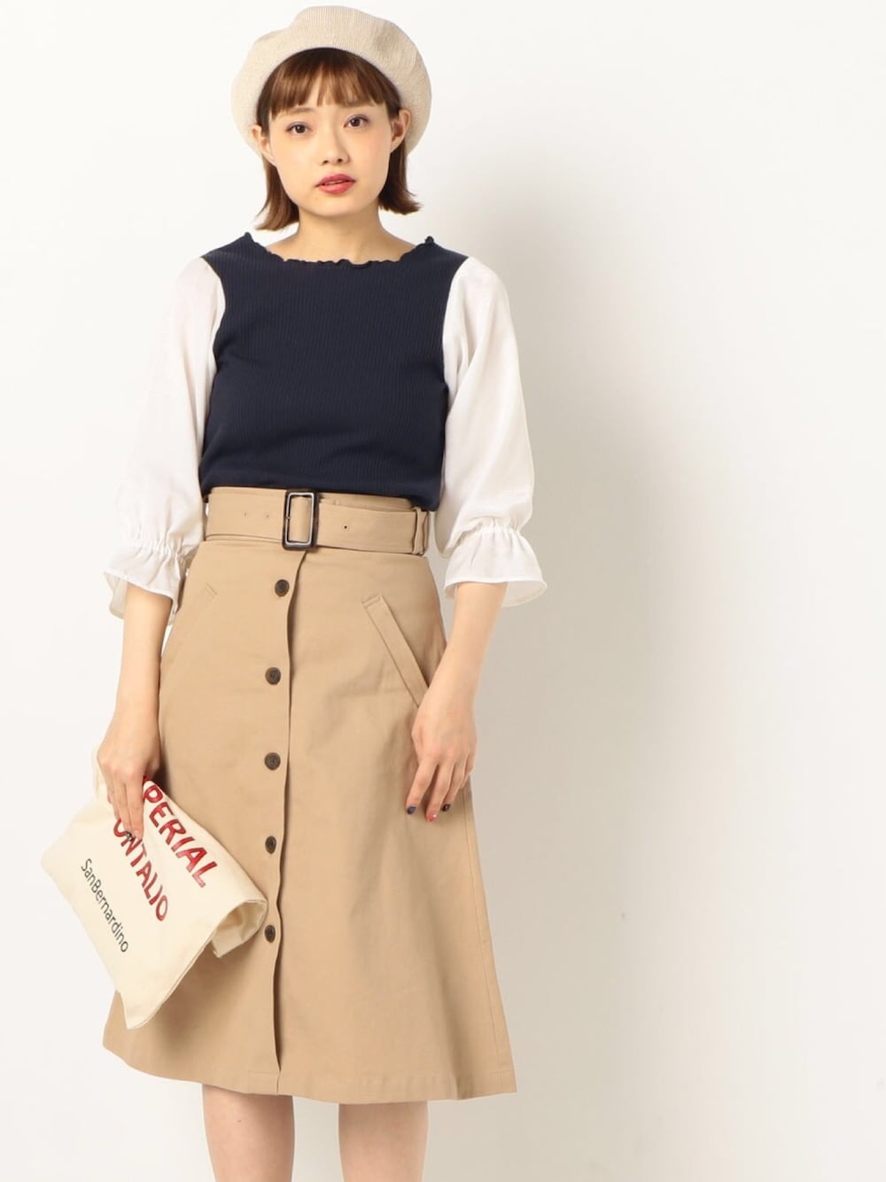 archivesのスカート「チノクロストレンチスカート」を使ったコーディネート