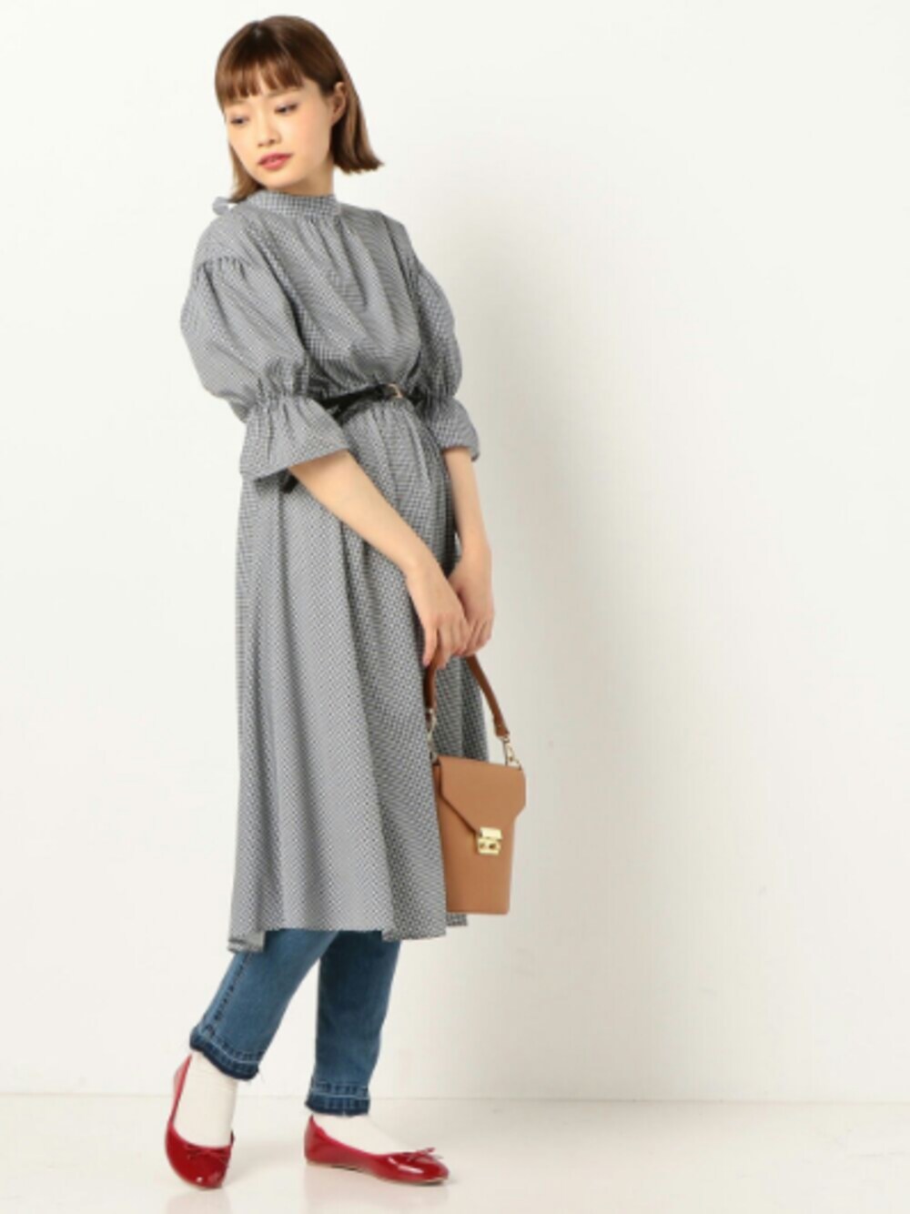 一枚だとフェミニンなギンガムチェックのワンピースも デニムと合わせてカジュアルに👗 赤のパンプスを差し色に◎