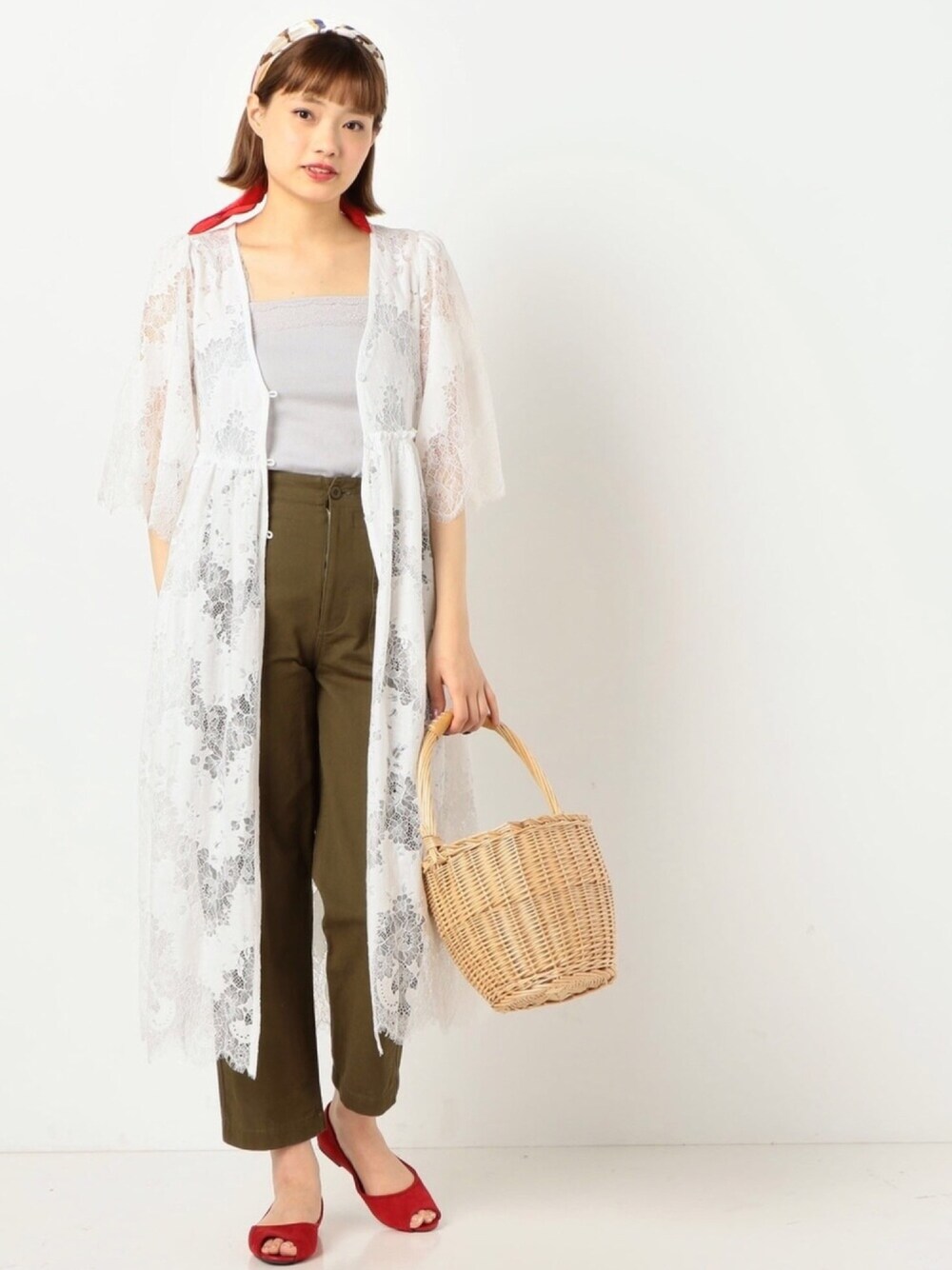 暖かくなってきたら レースガウンをさらっと1枚で✨ 小物でカラーを取り入れて 春のピクニックコーデ🌸