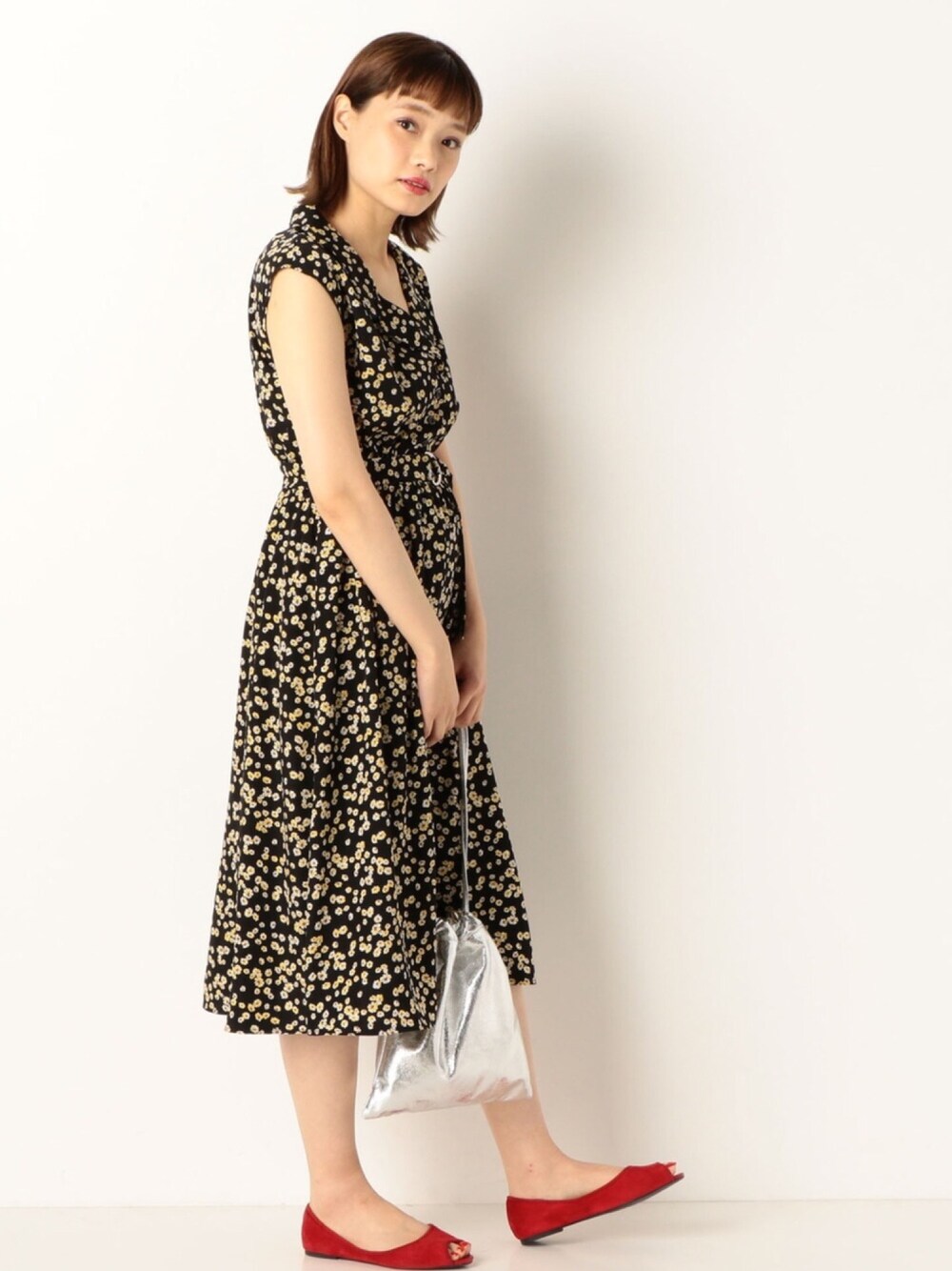 archivesのワンピース「小花柄開襟ワンピース」を使ったコーディネート