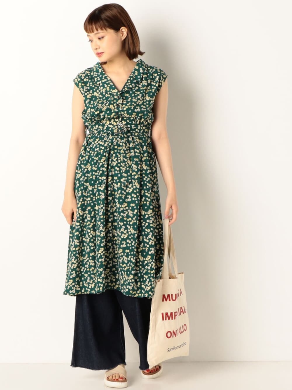 archives(archives)のワンピース「小花柄開襟ワンピース」を使ったコーディネート