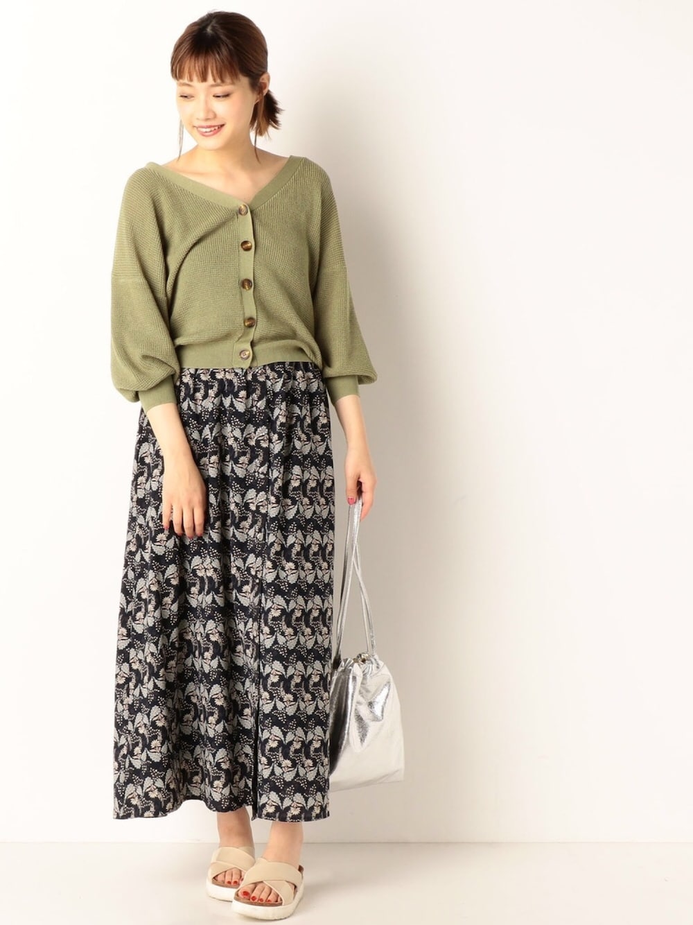 レトロ感のあるペイズリー柄の スカートをメインに シックなコーディネート✨ トップスのカーディガンは 袖ボリュームなので ゆるめにラフな雰囲気で着れちゃいます