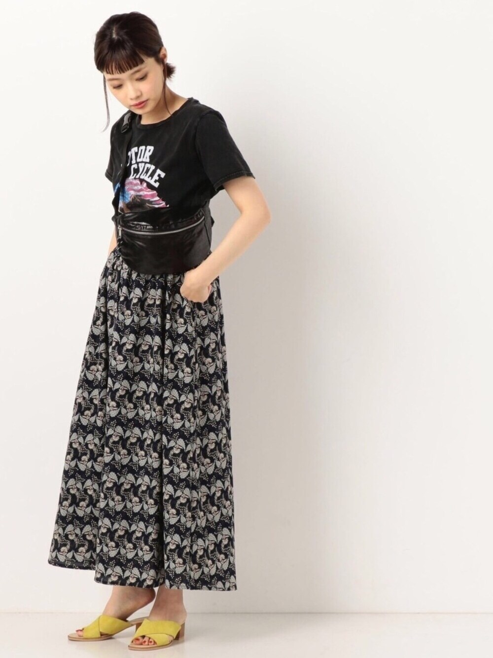 カジュアルなプリントTに ロングスカートを合わせて らくちん夏コーデ🌻 イエローのサンダルがアクセントに♪