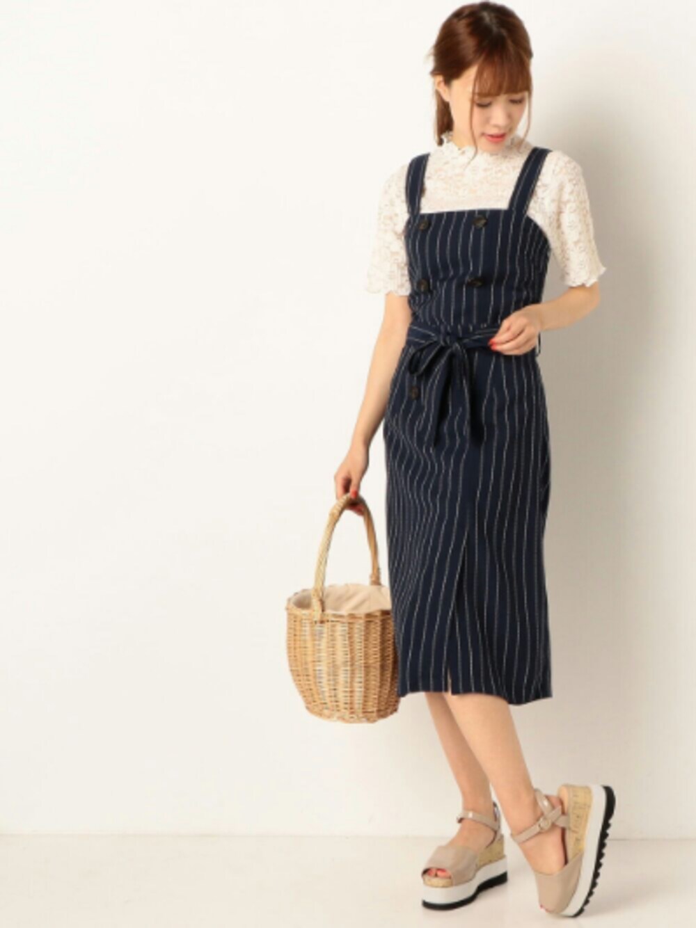 トレンドのトレンチジャンスカは ネイビー×ストライプで大人っぽく✨ 小物で夏らしさをプラス◎