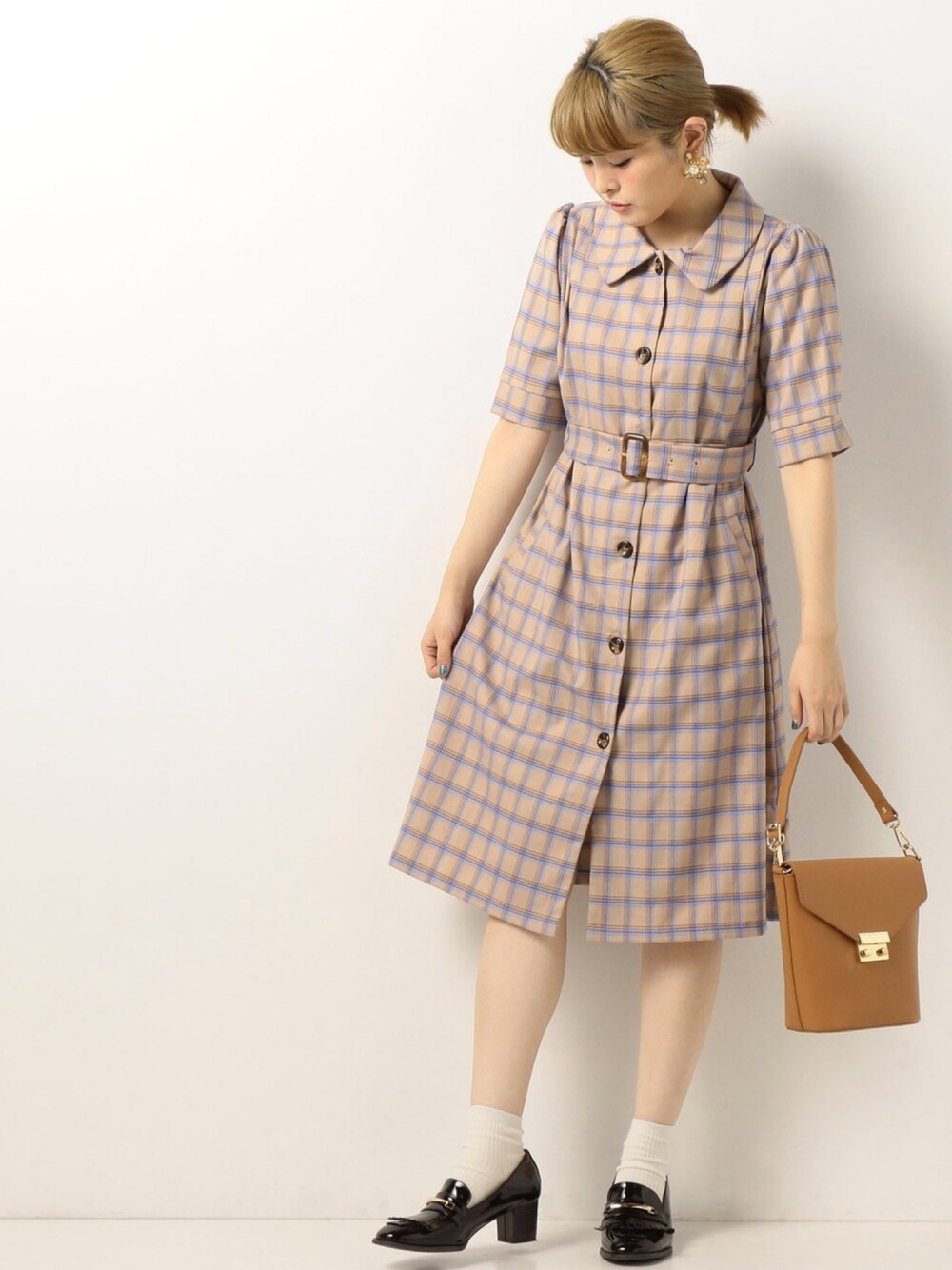 チェックのレトロワンピースで 秋を意識したデートスタイル♡ 足元はヒールのローファーでスタイルアップ!!