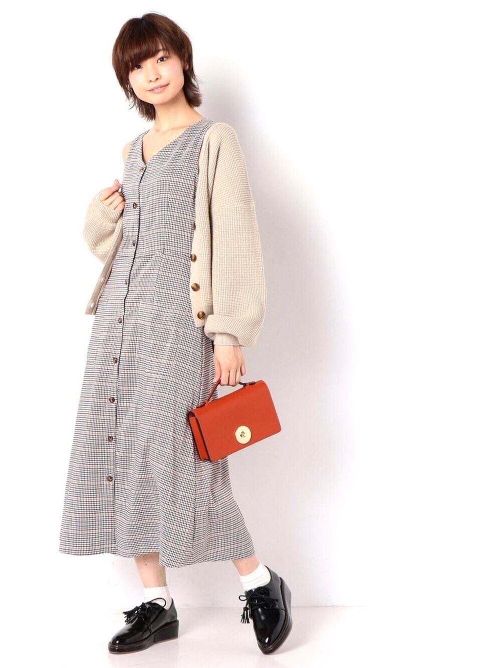 きれい目でも着れるワンピースを ゆるめのカーデで合わせて 大人のリラックススタイルに♪
