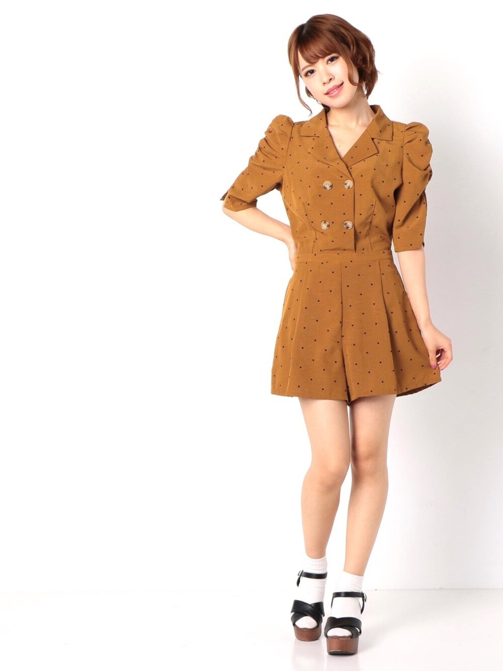 1枚でも可愛い ドットのコンビネゾン 型のパフスリーブが 可愛らしさをさらにプラス✨