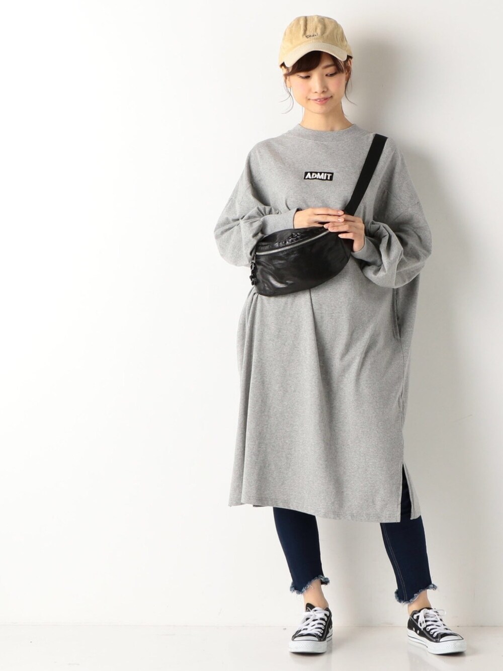 Tシャツワンピは キャップ、スニーカーと合わせて スポーティーに✨