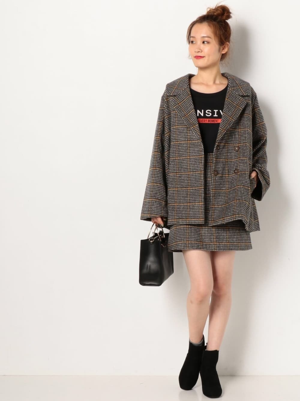 Aラインのシルエットがポイントの ショート丈コート💕 同じ柄のスカートもあるので セットアップコーデにも◎