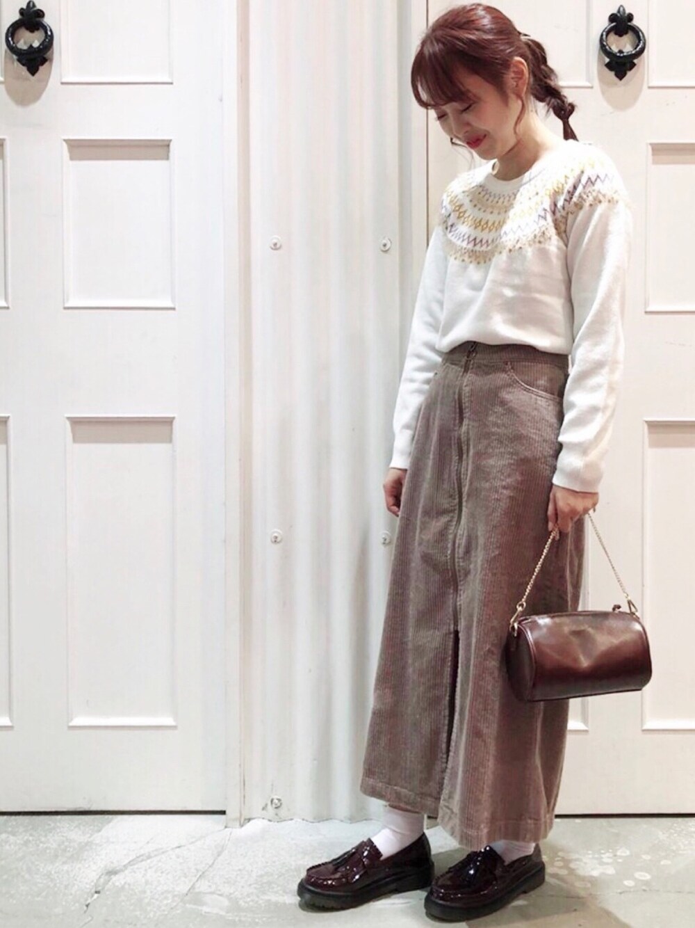 色味がポイントのジャガードニット✨ タイトスカート合わせで シンプルカジュアルに♥️