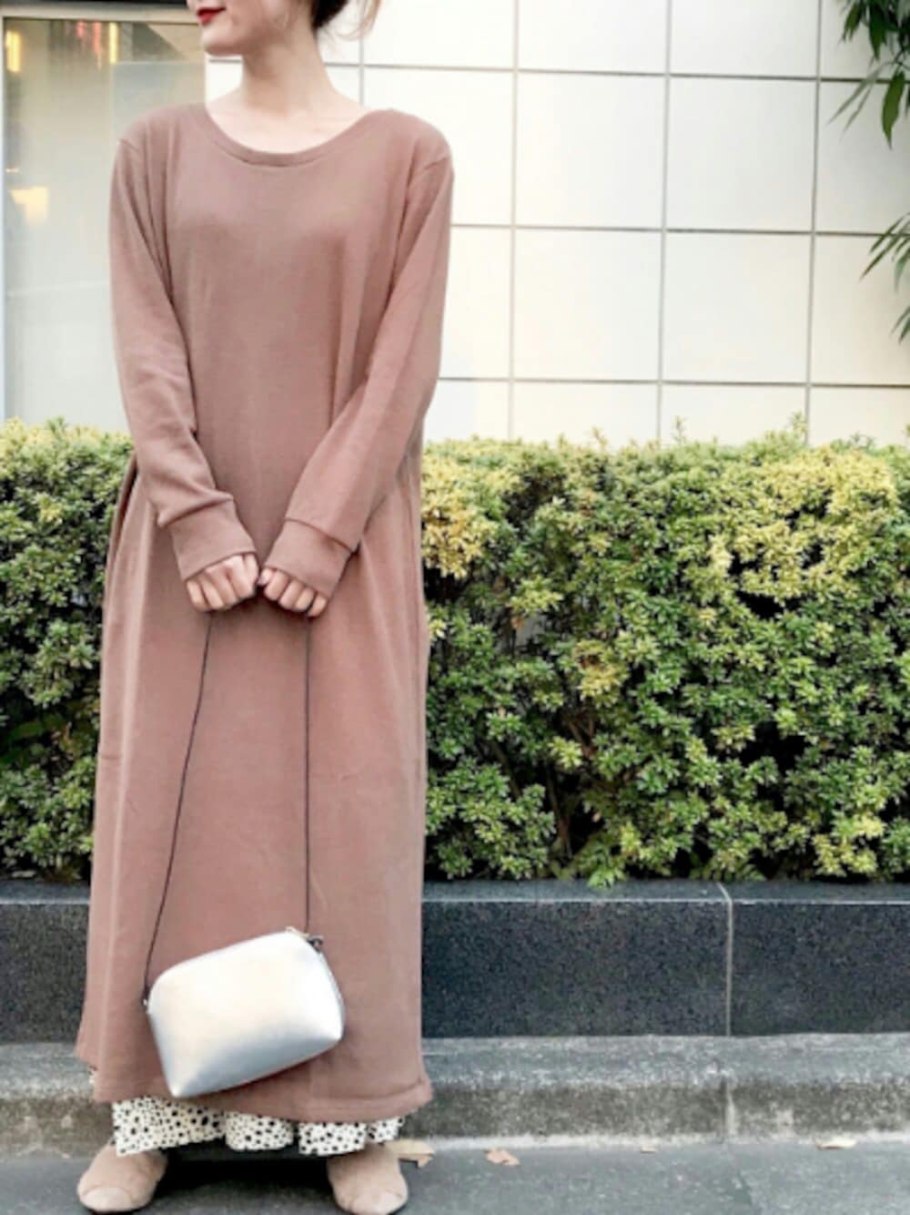 サーマルのワンピースはバックスタイルのレースアップがワンポイントに👗 ロングスカートをレイヤードしたゆるコーデ💕