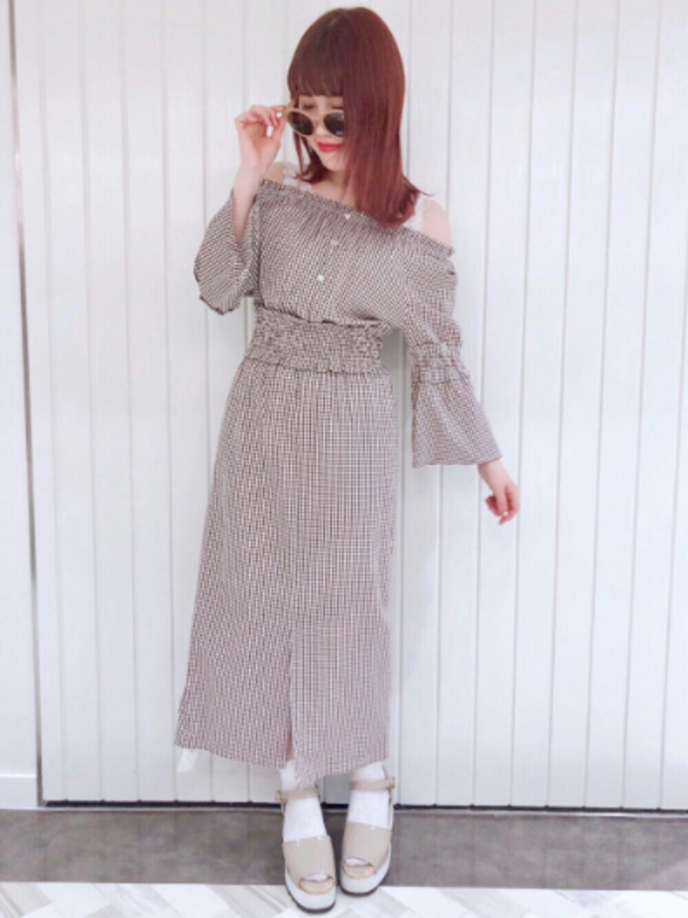 ギンガムチェックのオフショル ワンピースで夏先取りコーデ✨