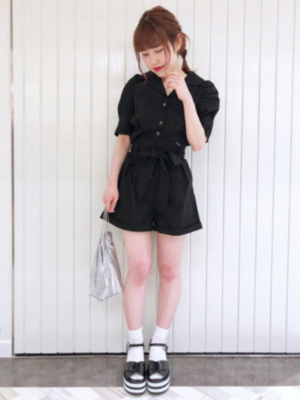 開襟シャツとショートパンツのセットアップ💕 オールブラックで大人っぽく✨