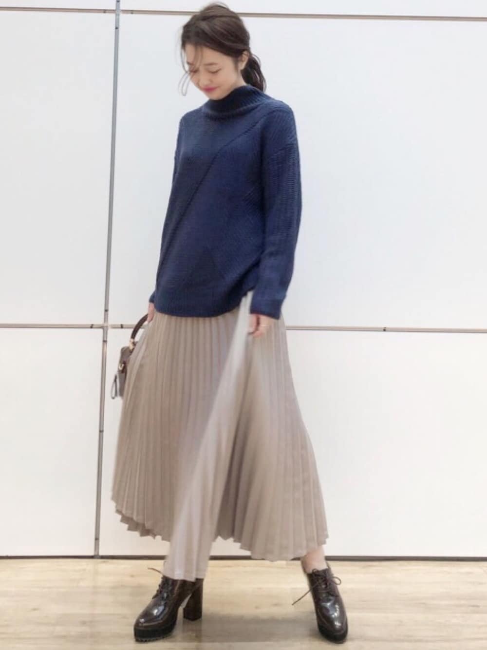 ハイネックニットにプリーツスカートを合わせた 大人カジュアルスタイル✨
