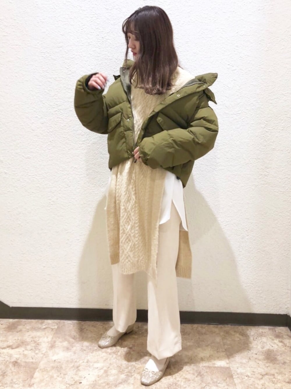 オールホワイトコーデもダウンジャケットでカジュアルに✨