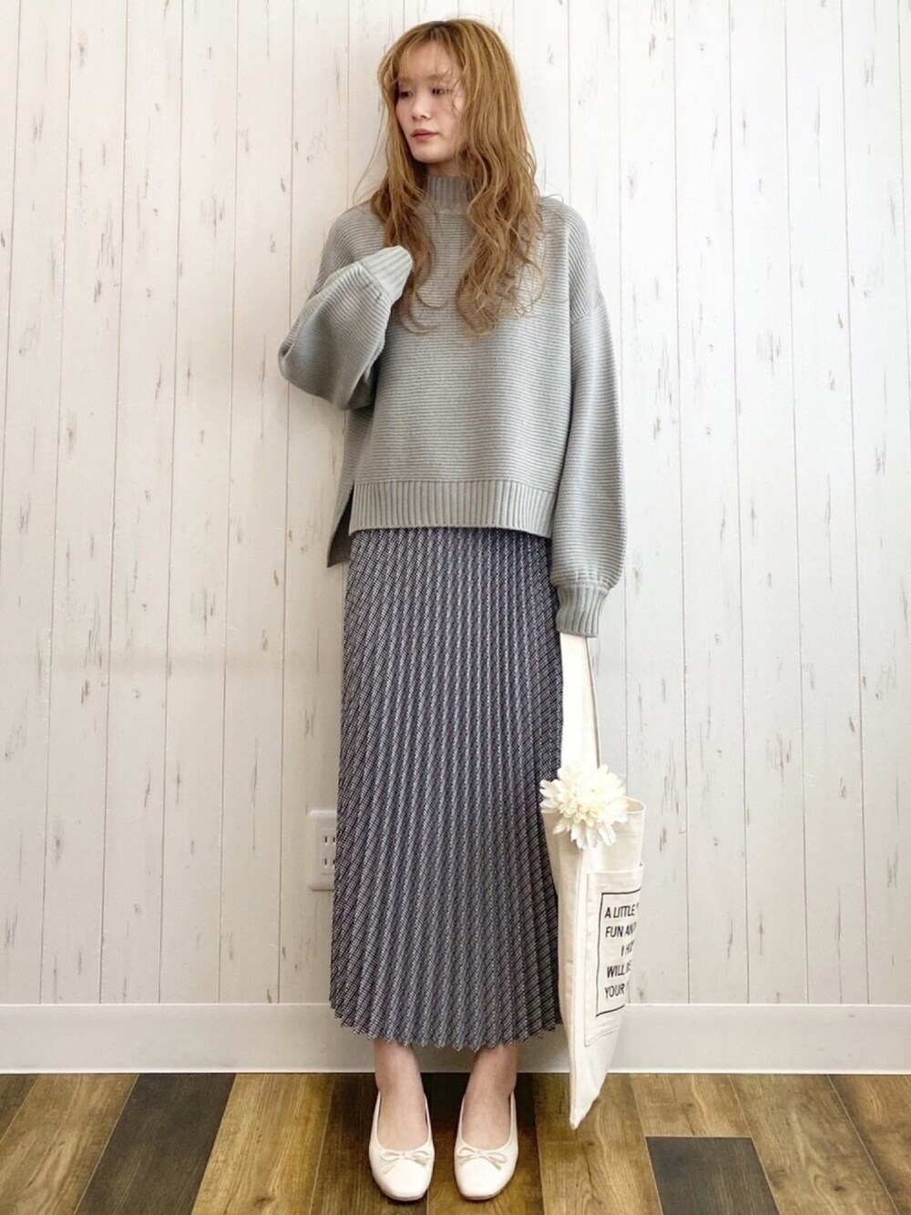 ゆるニットにプリーツスカートで大人カジュアル✨ バレエシューズで春を先取り🍀