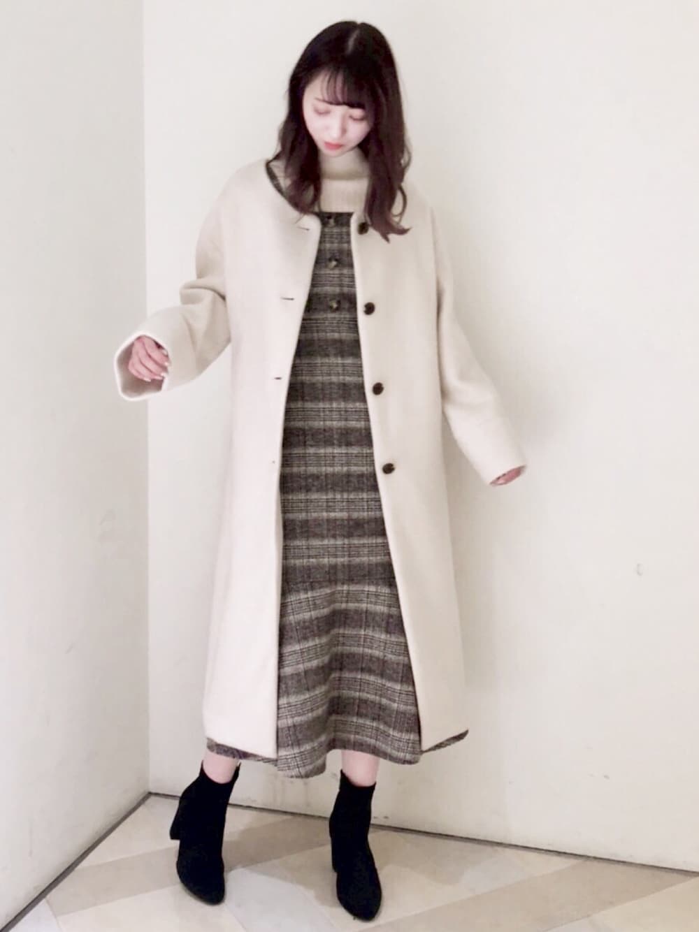 ウールコートにワンピースを合わせた 初詣にもおススメなコーディネートです🎍