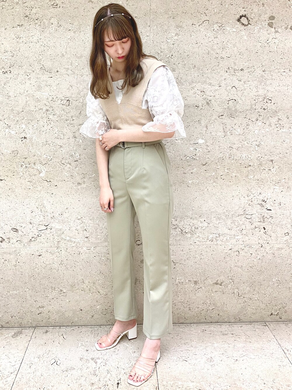 後ろのリボンが可愛いビスチェsetと合わせるのは、もちろんピスタチオカラーのパンツ🥑