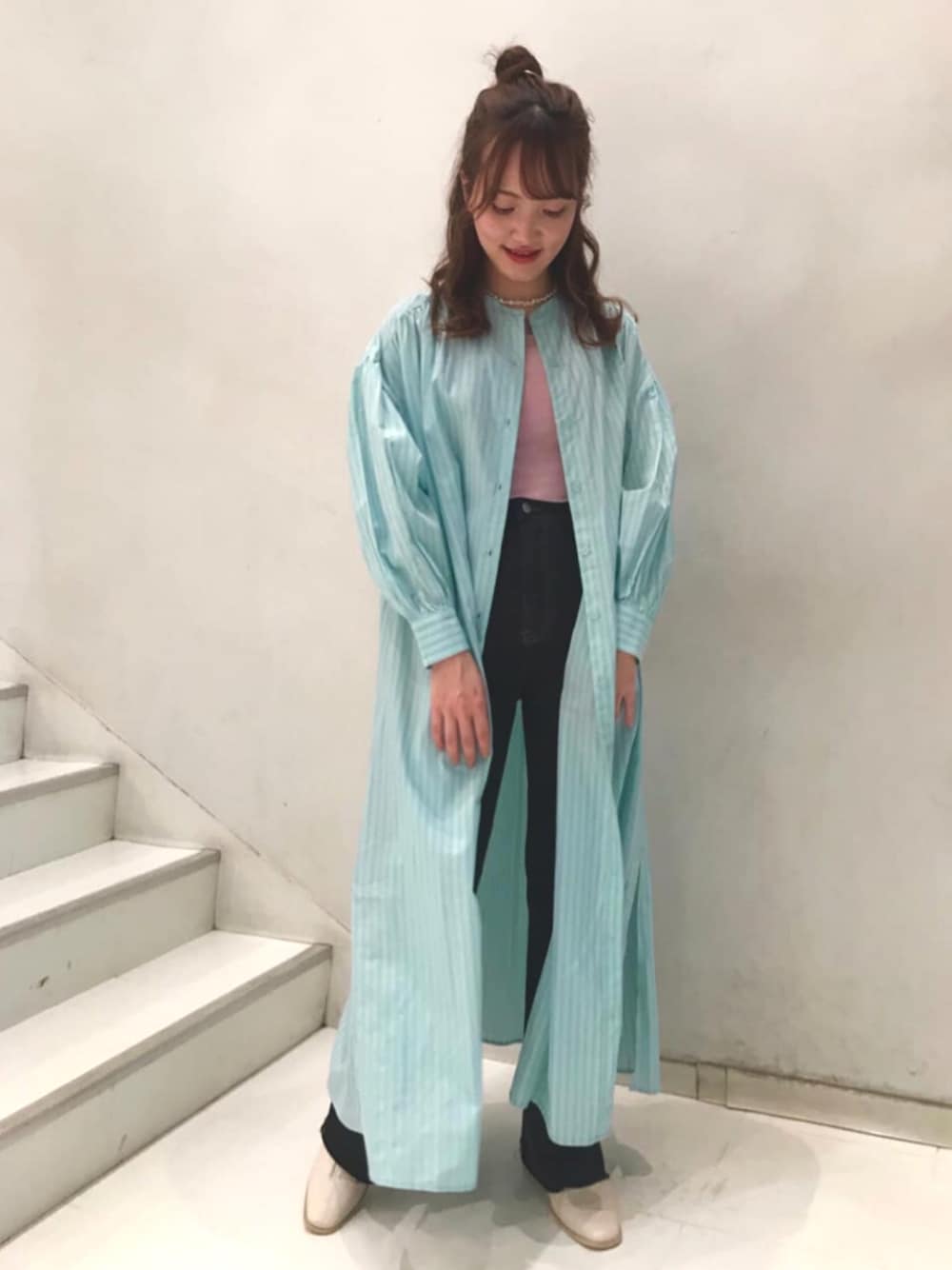 archivesのシャツワンピース「【入荷禁止】ストライプボリュームスリーブシャツワンピース」を使ったコーディネート