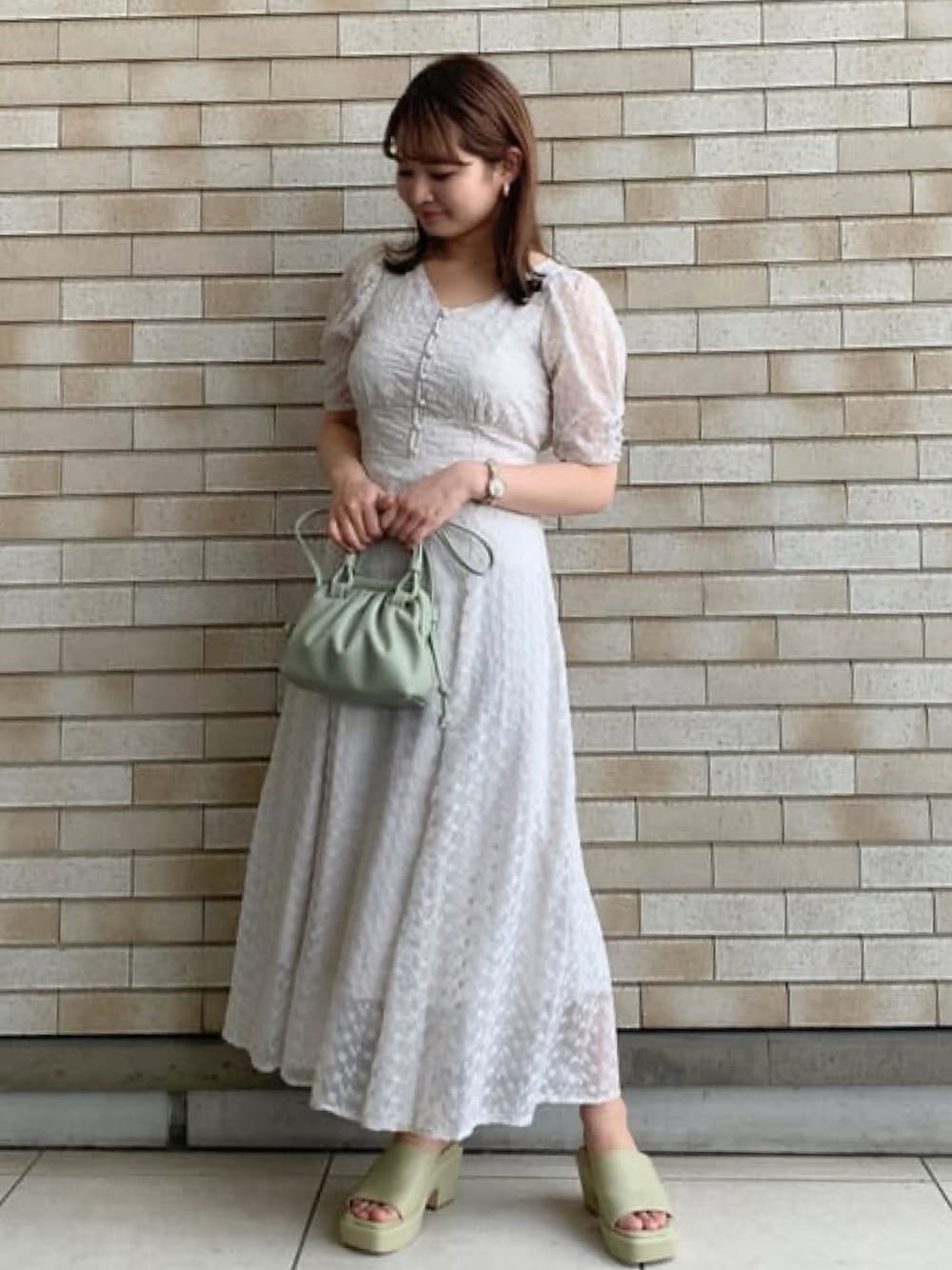 archivesのワンピース「刺繍切替ワンピース」を使ったコーディネート