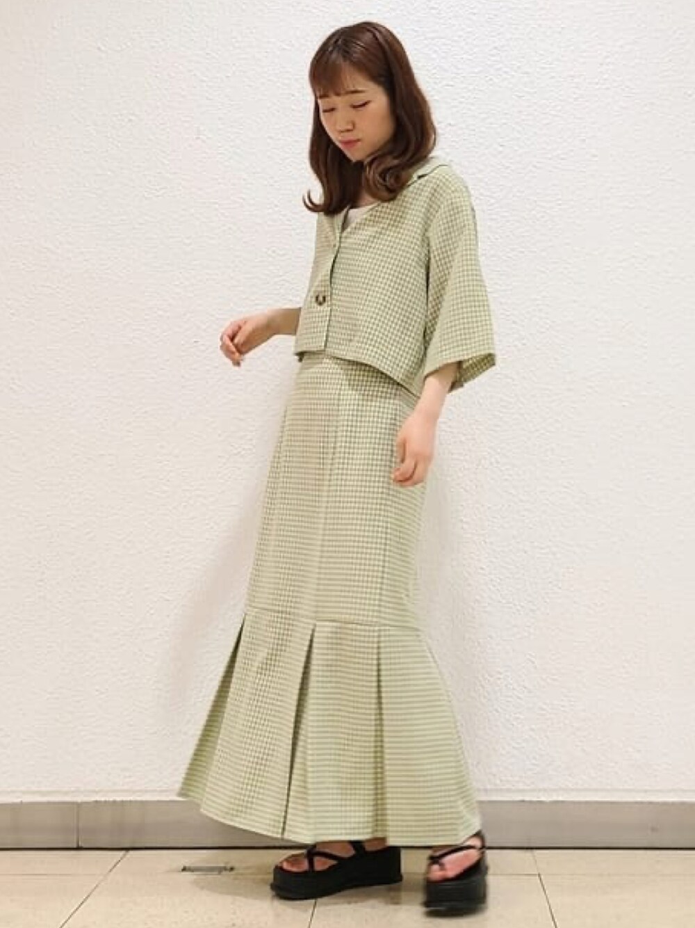 archivesのテーラードジャケット「【setupにも】チェックショートシャツジャケット」を使ったコーディネート