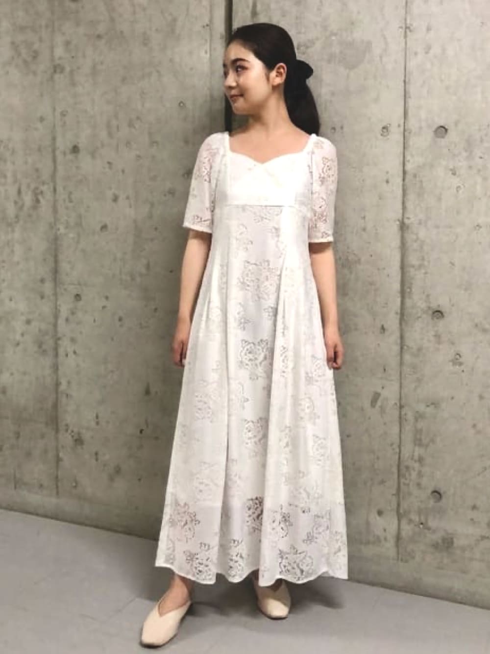 archivesのワンピース「コットンレースパフIラインワンピース」を使ったコーディネート