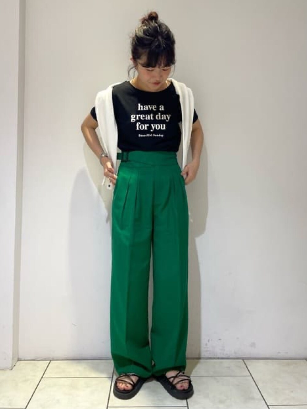 archivesのTシャツ/カットソー「短丈フロッキープリントT」を使ったコーディネート