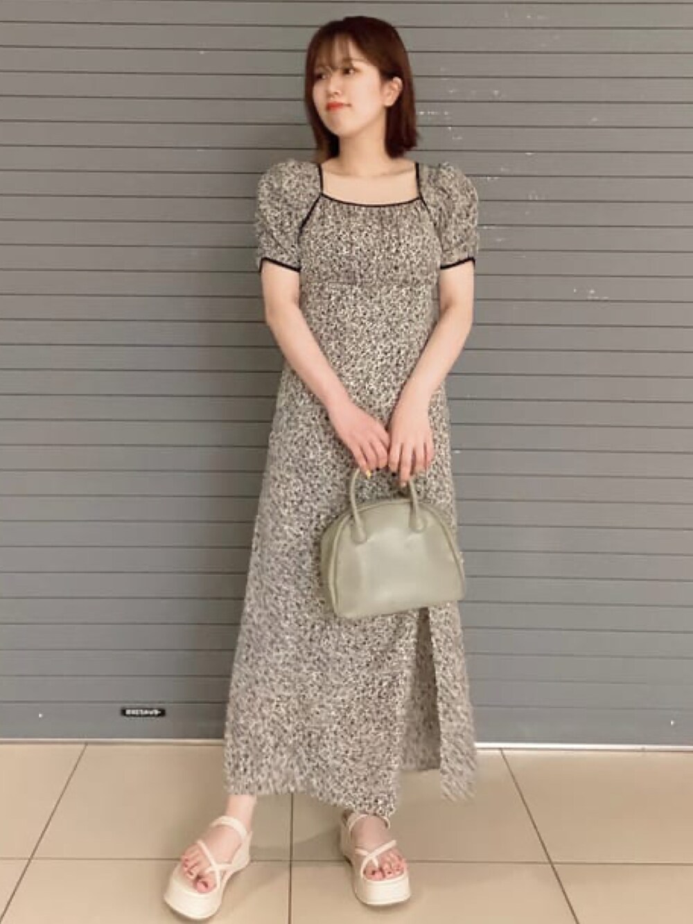 archivesのワンピース「花柄パイピングスリットワンピース」を使ったコーディネート